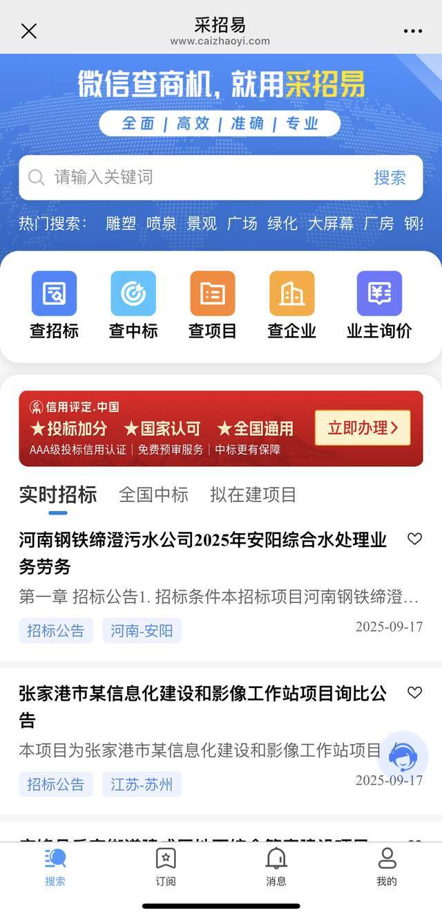 国内知名的招标服务聚合平台,依托大数据技术整合全网资源,累计服务海量用户,历史招中标数据储备超3.6亿条,信息覆盖率达98%以上,覆盖工程建设、市政园林、医疗卫生、教育、家具采购等千余个细分行业,跨行业项目聚合与趋势预判能力突出。